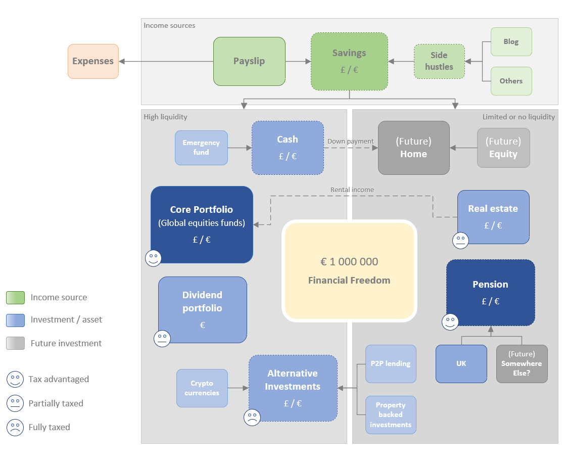 The main goal is reaching a €1.000.000 Net Worth. This will be more than enough to provide me with financial freedom and long term financial stability.
